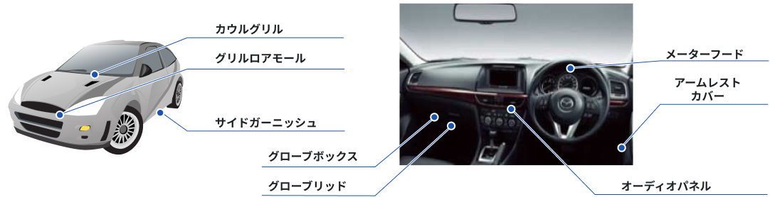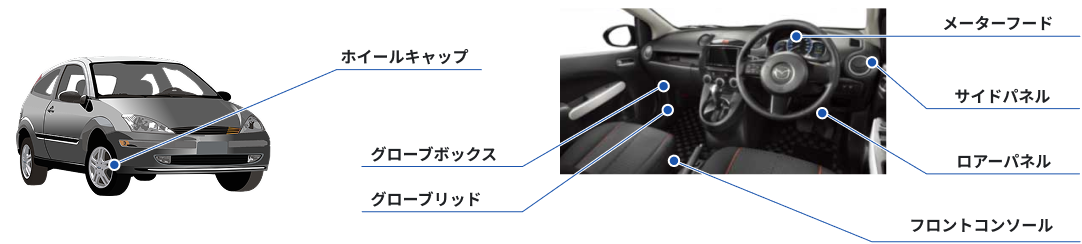 自動車金型より生み出された自動車部品例