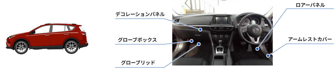 自動車金型より生み出された自動車部品例