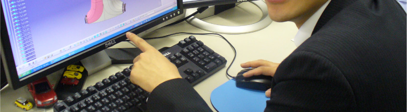 自動車の内装部品(樹脂製品)を製造するメーカーにて、生産準備の仕事をしています。私は主に金型の製作に関わっており、設計部門から送られてきた製品データをもとに金型のサイズや仕様設定を行います。月産量が多い金型は摩耗が激しいので硬度が高い鋼材を選ぶ必要がありますし、射出や冷却の位置検討なども重要。それらを検討しながら仕様を決めたら、次は金型メーカーに製作を手配。金型が完成した後は、製品の完成に向けてトライ&チェックを繰り返しながら、金型の不具合をなくし、条件を満たした金型に仕上げていくのが主な流れです。